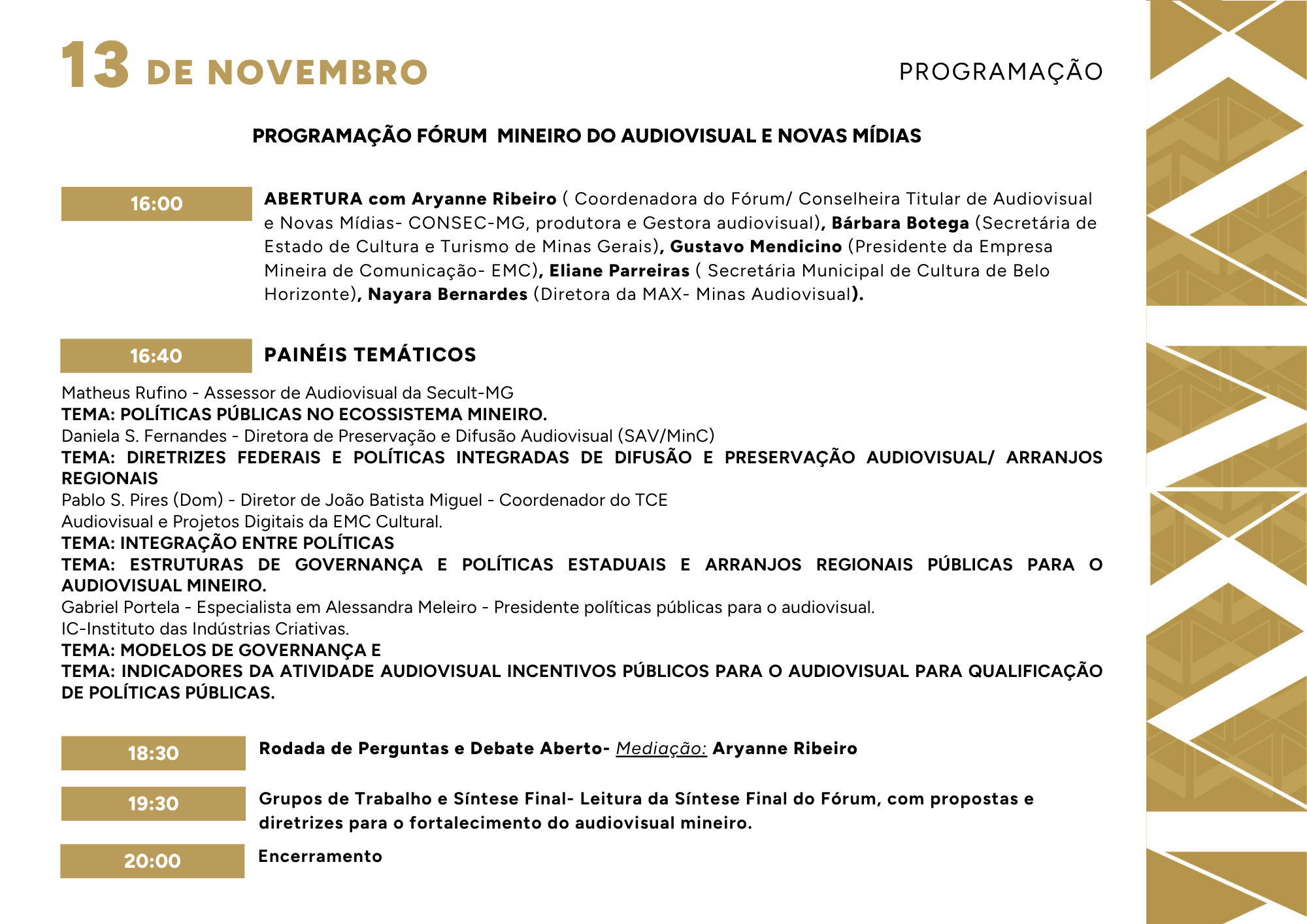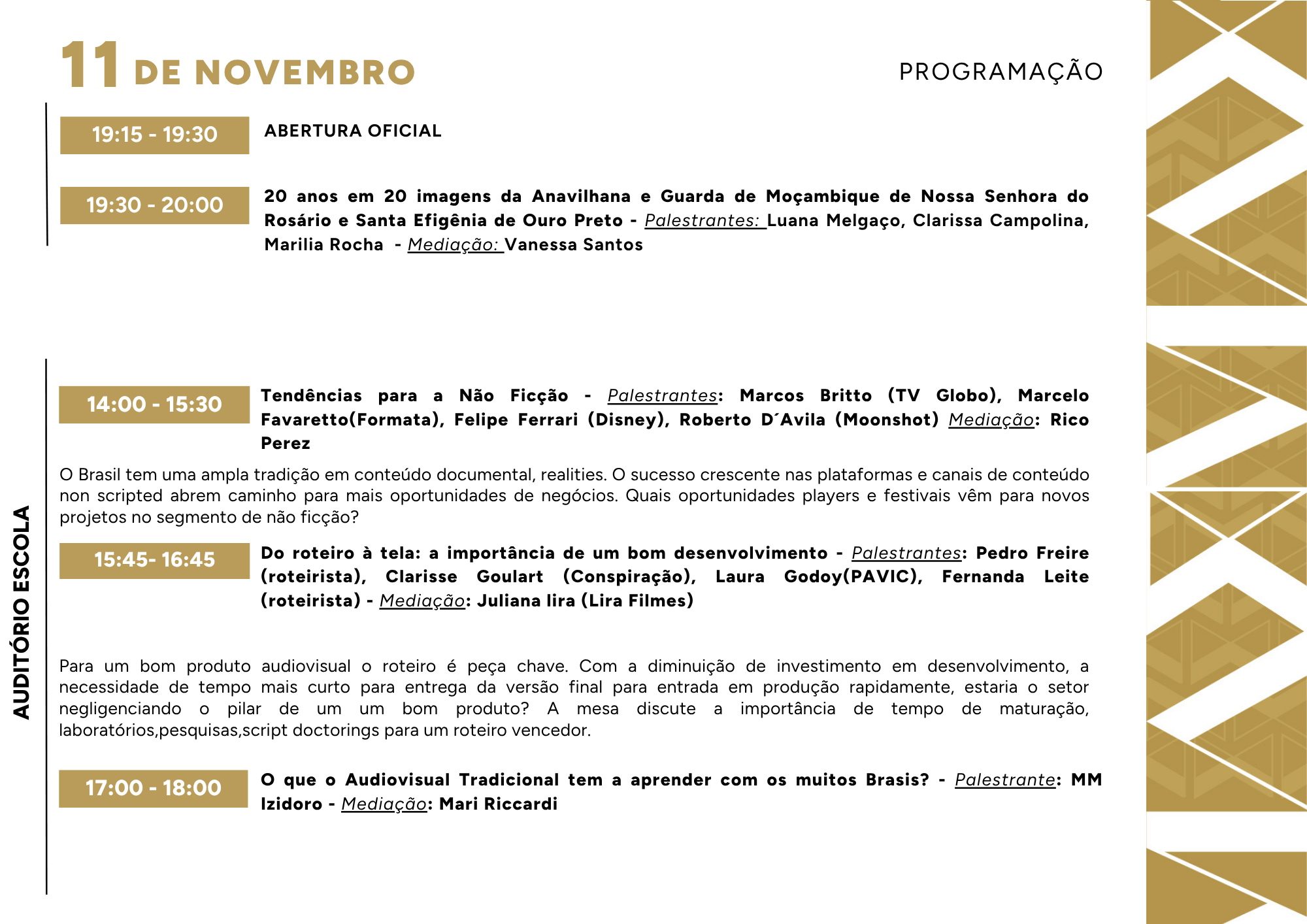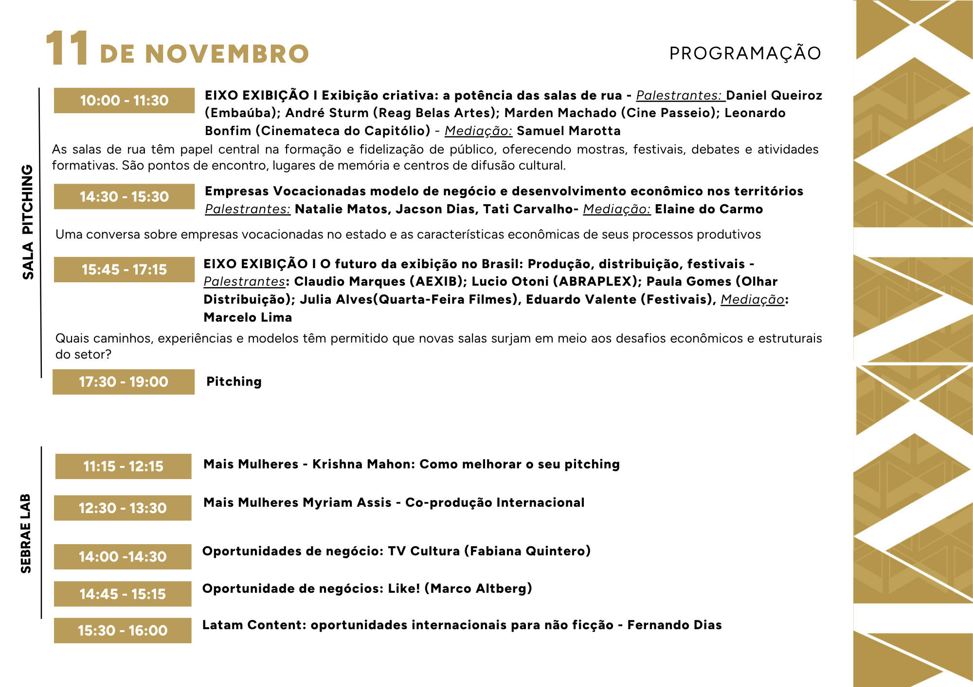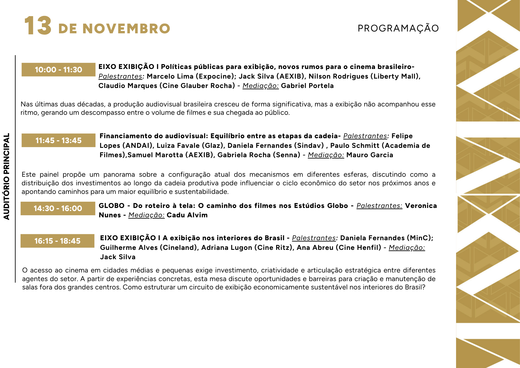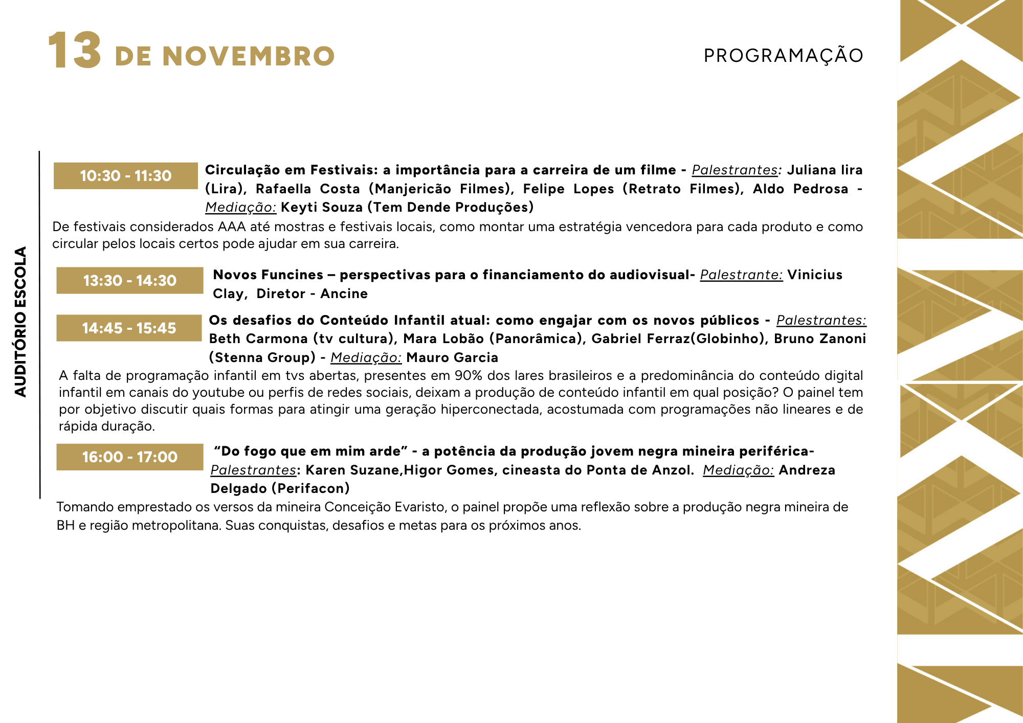 Seus principais pontos fortes são os encontros entre produtores e exibidores, além de debates sobre o futuro do setor, sendo o maior salão de negócios mineiro, inteiramente dedicado à promoção de agentes econômicos da indústria audiovisual.