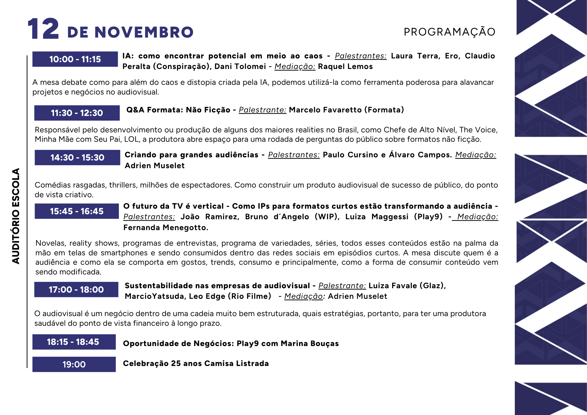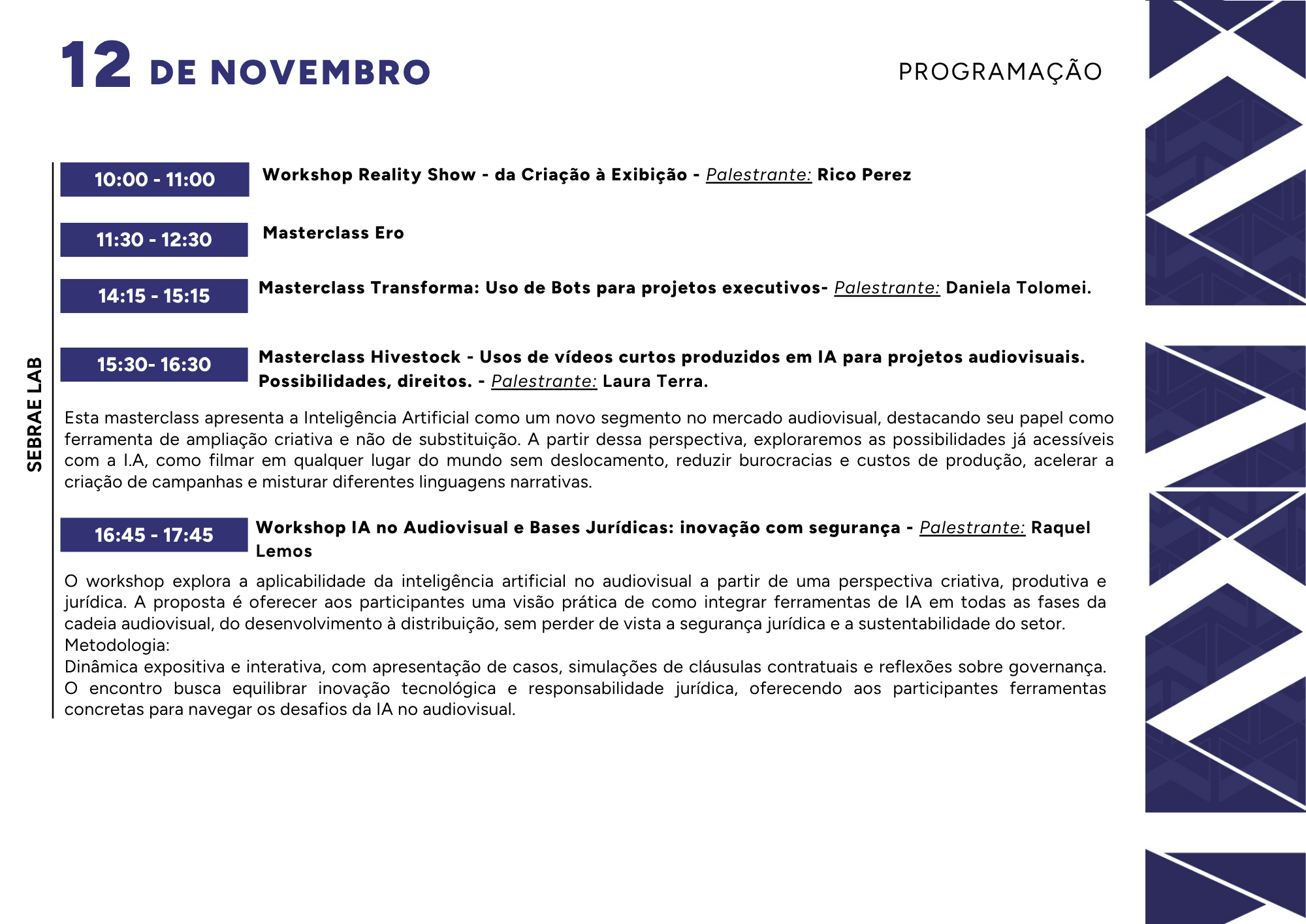 A realização do evento tem o objetivo de fomentar a indústria de produção de conteúdo para mídia e entretenimento, ampliar a geração de negócios do Audiovisual e aumentar a competitividade dos empreendimentos, por meio de qualificação técnica.